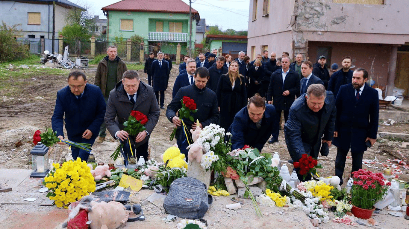 Вони вшанували пам’ять невинних людей, яких вбили окупанти під час масованої атаки 5 жовтня. Зокрема, принесли квіти.
