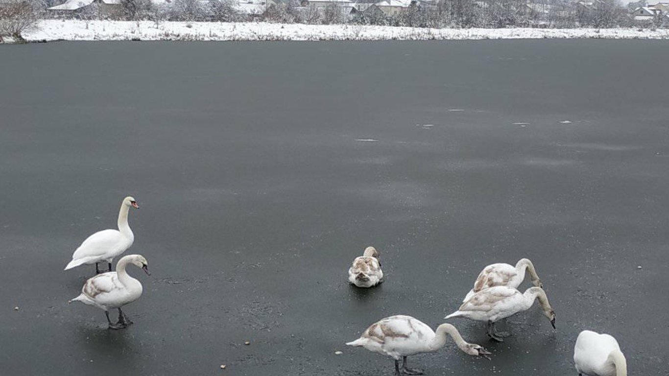 Ковзанка для лебедів: у мережі опублікували фото замерзлого озера на Львівщині