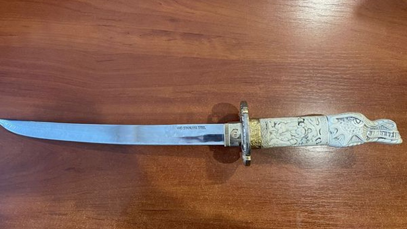 "Знахідку, що могла становити небезпеку для поштових працівників чи інших громадян, вилучили та скерували на експертизу. Згідно з висновком фахівців, вказаний предмет був виготовлений на зразок японських мечів "танто", є холодною зброєю, бойова частина якої призначена для нанесення рубляче-різаних ушкоджень" - йдеться у повідомленні.