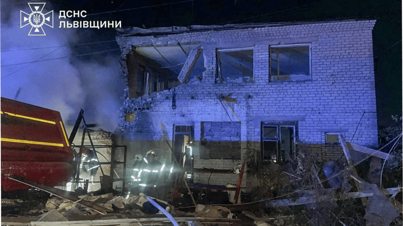 У ДСНС зазначили, що через падіння уламків дрона у селі Куликів сталося руйнування господарської цегляної двоповерхової будівлі та пожежа на площі 20 квадратних метрів.