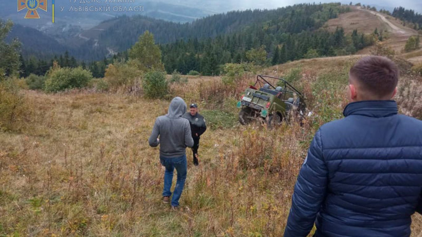 На Львівщині, піднімаючись на гору, перекинулась автівка з туристами. Фото