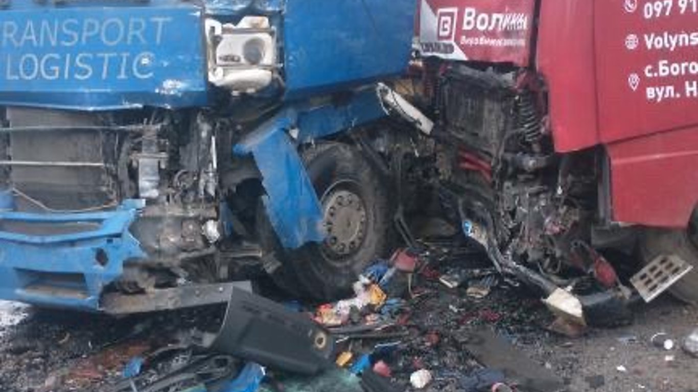 На Львівщині зіткнулися дві вантажівки: рух повністю перекрито. Фото