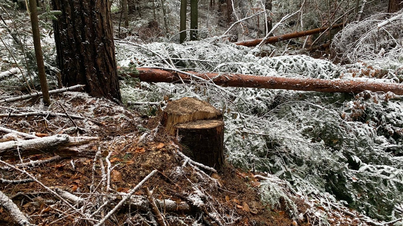 На Львівщині у національному парку виявили незаконну вирубку дерев. Фото, відео