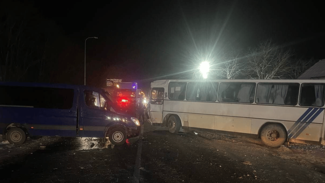 Судячи з фото, ймовірно, зіткнулися автобус та мікроавтобус.