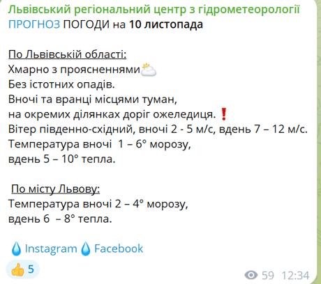 Погода на Львовщине 10 ноября