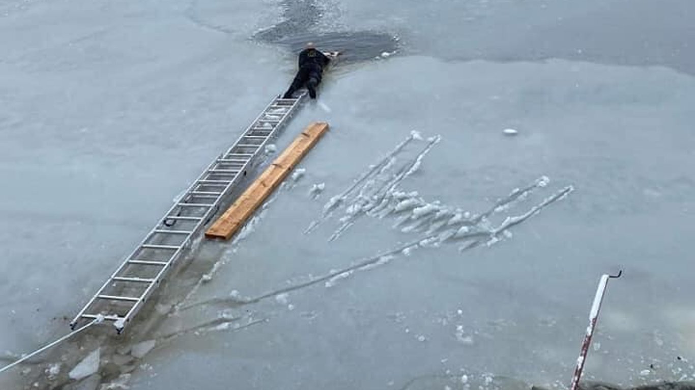 На Львовщине мужчина, рискуя жизнью, спас собаку из-под льда. Фото