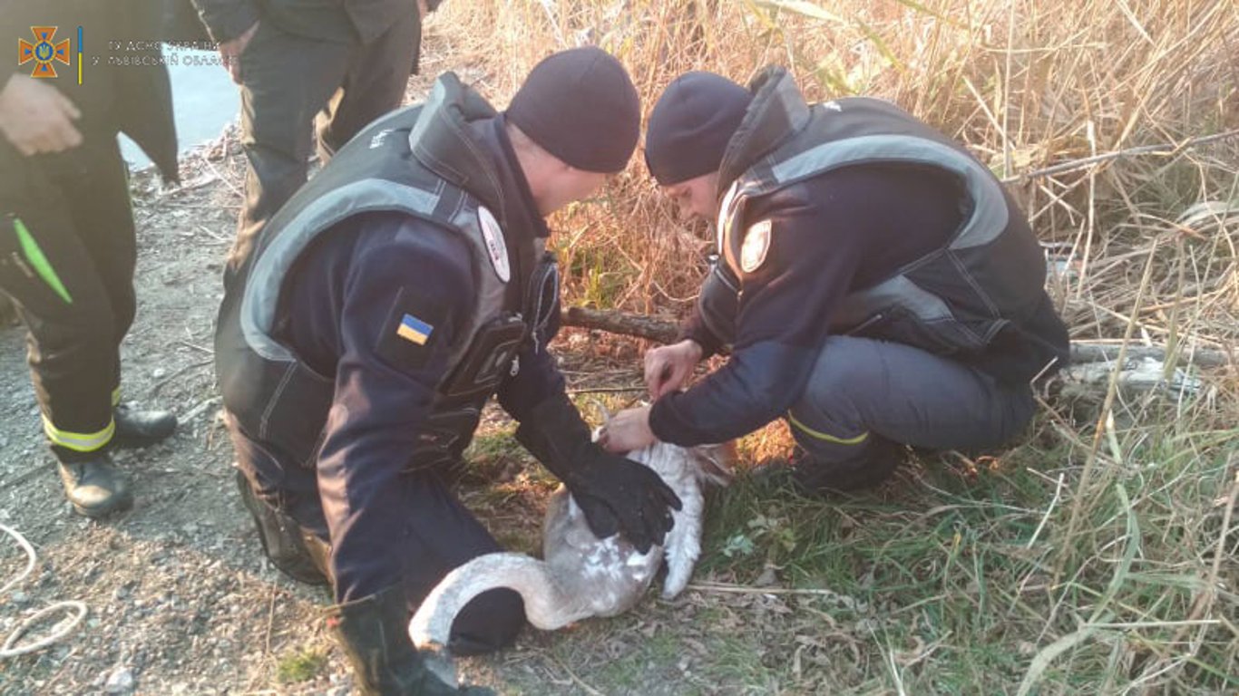 На Львовщине спасли лебедя из ловушки: теперь птица на свободе. Фото