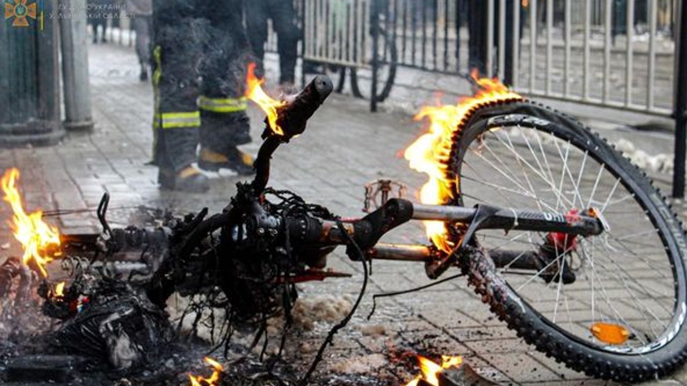 Сгорел дотла: в центре Львова вспыхнул электровелосипед. Фото