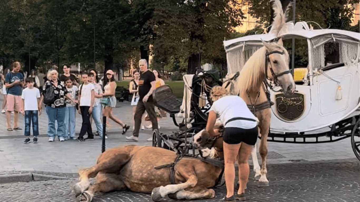 В центре Львова упал конь, который возит кареты — власть резко отреагировала