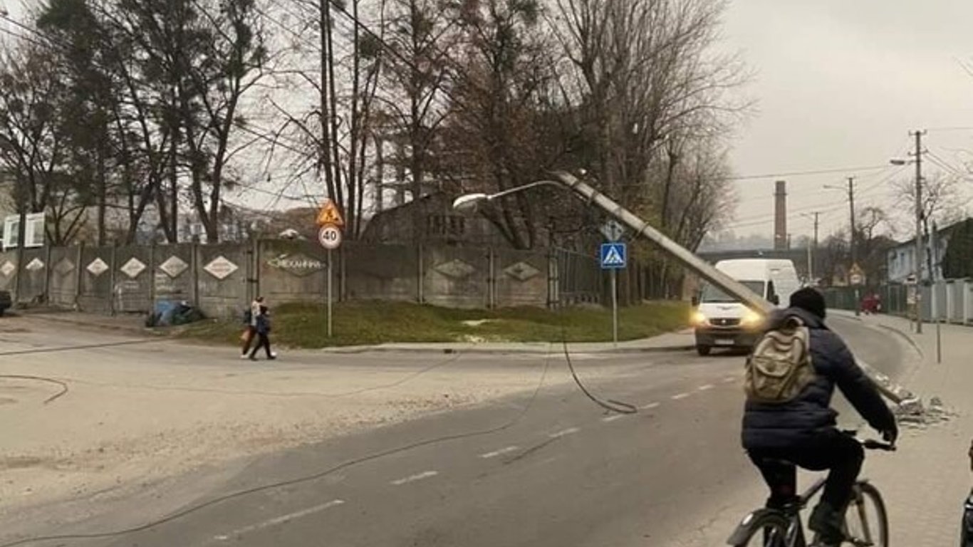 Во Львове на улице Новознесенской электроопора рухнула на автомобиль.