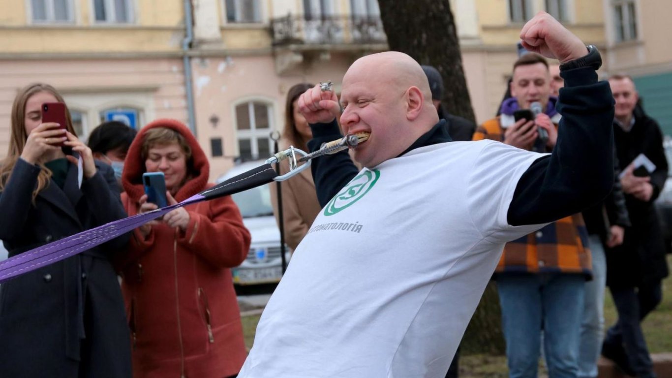 Во Львове 15 февраля местный педиатр, рекордсмен Книги рекордов Гиннеса, протащил зубами карету скорой помощи, в которой сидели десять детей. Таким образом Олег Скавыш напоминает о проблеме вакцинации детей от полиомиелита.