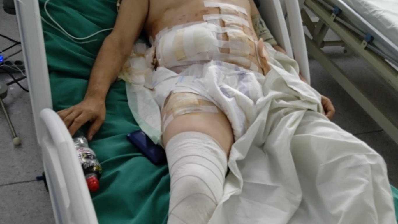Його пронизили три кулі зі зміщеною боєголовкою, які уразили кишківник, внаслідок цього відірвалася трахея. Пораненого військогово спочатку направили до госпіталя у Харкові, де його намагалися врятувати місцеві медики, а зараз чоловіка перевели до Києва.