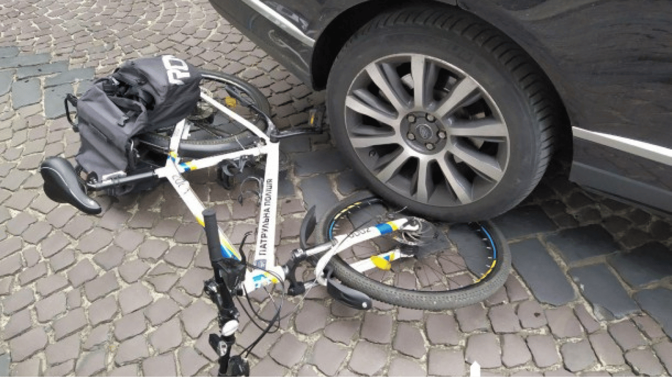 На вул. Дорошенка, після повторної спроби поліцейського зупинити порушника, позашляховик здійснив наїзд на ногу велопатрульного, спричинивши легкі тілесні ушкодження.